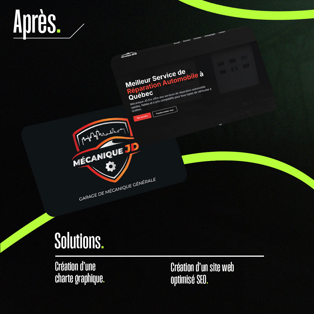 Mécanique JD, un garage automobile à Québec, avait besoin d'une présence web moderne et professionnelle pour mieux servir sa clientèle et développer son activité dans le secteur automobile.